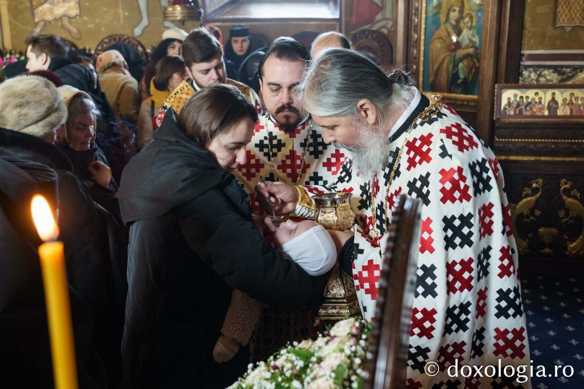 Sfânta Liturghie a fost săvârșită de Înaltpreasfinţitul Părinte Teofan, Mitropolitul Moldovei și Bucovinei, înconjurat de un sobor de preoți și diaconi.